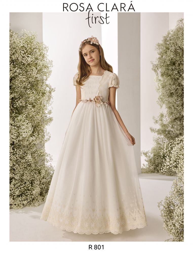 Todos los vestidos que agrupa la colección Rosa Clará First están hechos con tejidos exclusivos, como la seda o el tul bordado, entre otros. Y, en todos los casos, se combina la belleza y el romanticismo consiguiendo modelos exquisitos. ¡Se plasma la delicadeza en cada costura de los atuendos! Pues, nuestra emblemática marca de moda nupcial también imprime su universo de feminidad y elegancia en la moda infantil. ¡Solo hay que descubrir los vestidos de comunión para niñas!